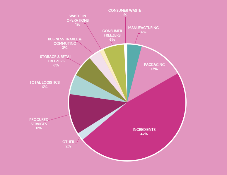 SCOPE 3: All the indirect emissions associated with the downstream and upstream activities of our business, for example the emissions from farming our ingredients or transporting Little Moons around the world.