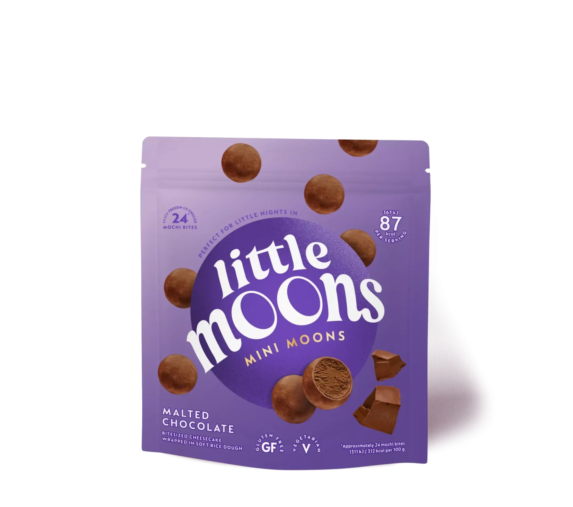 Mini malted chocolate cheesecakes wrapped in our signature sweet and chewy mochi dough. Enjoy them straight from the freezer or fridge and pop them back in after 30 minutes.
